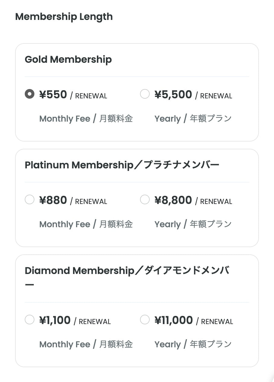 公式サイトのストアページにある「〜コミュニエメンバーシップ〜」商品をクリックし、メンバーシッププランと「月額か年額プランを選んでください。