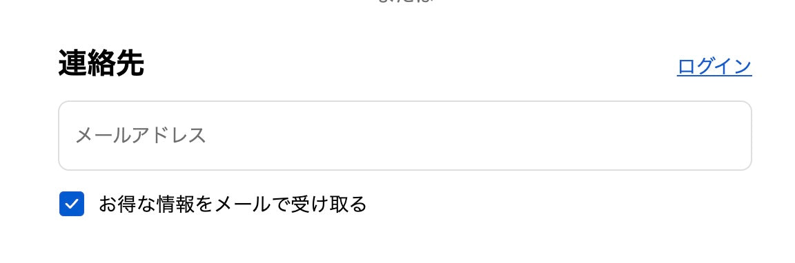 Apple Payをご利用で、他のメールアドレスをログイン用に使用したい場合は「かんたん決済」を使用せず、「チェックアウト」から情報をご入力ください。